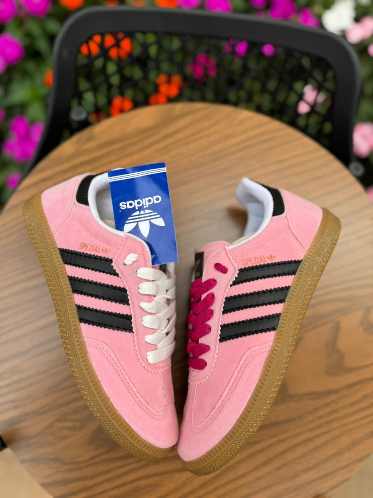 Aunque a menudo se confunden con los populares Adidas Samba debido a su silueta similar y puntera en forma de T, puedes identificarlos por el nombre "SPEZIAL" grabado en dorado en el lateral junto a las tres franjas